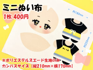 店頭限定グッズだった「ぬの缶バッジ」が通常ラインナップに!ぬい布プリントで使用しているポリエステルスエードにプリントして缶バッジにします(同人工房Web対応)