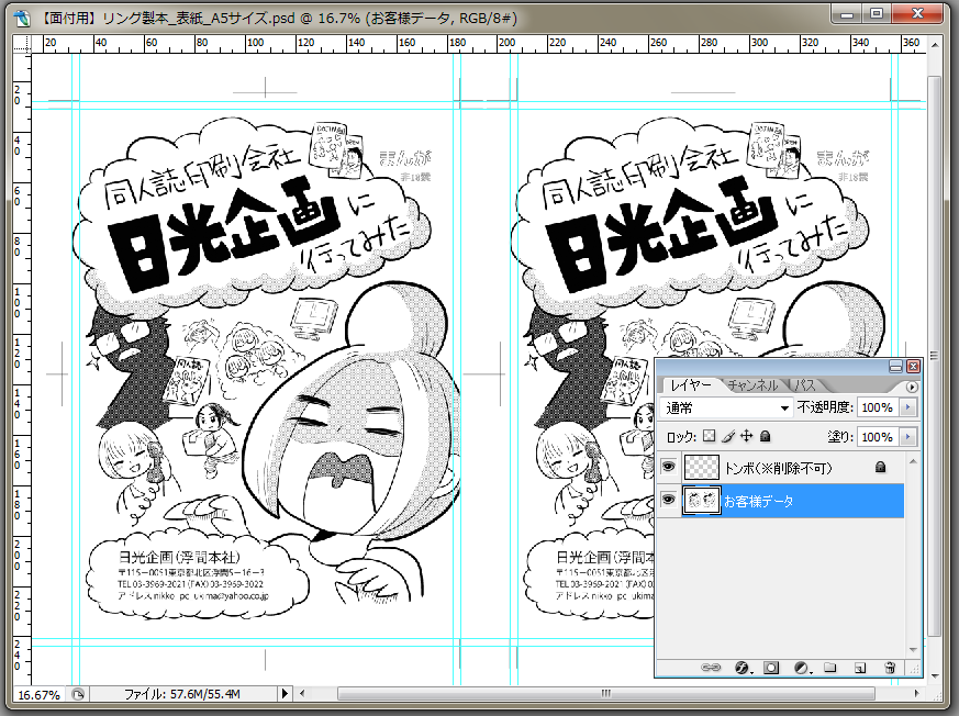 作成に心配な時は『リング製本_表紙psd』テンプレートに貼り付けたデータもご用意ください。